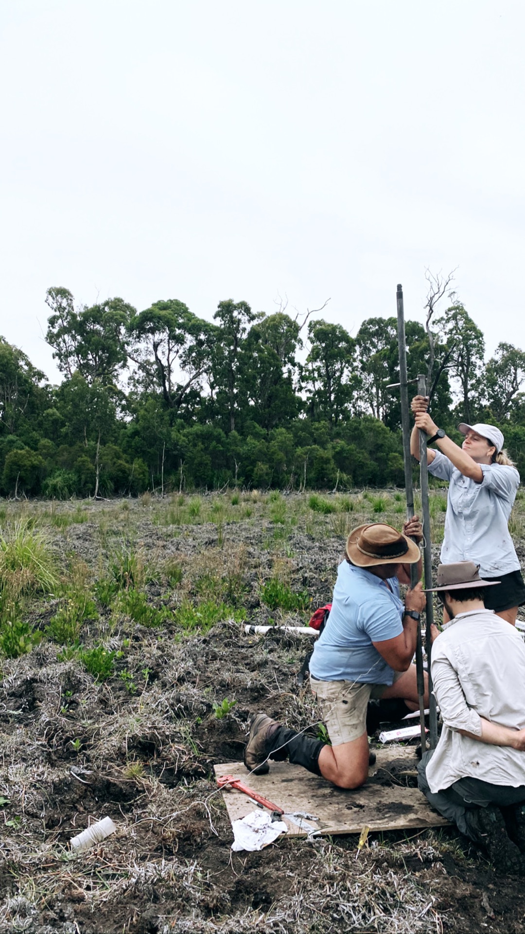 7. Here we were coring a bog for the PF-FIRE project at Wombat Creek. We are reconstructing the fire and pollen history to detect the impacts of Aboriginal burning on fuel types and loads, and fire frequency and intensity. This was the second of 4 failed attempts before we finally got the perfect core.
