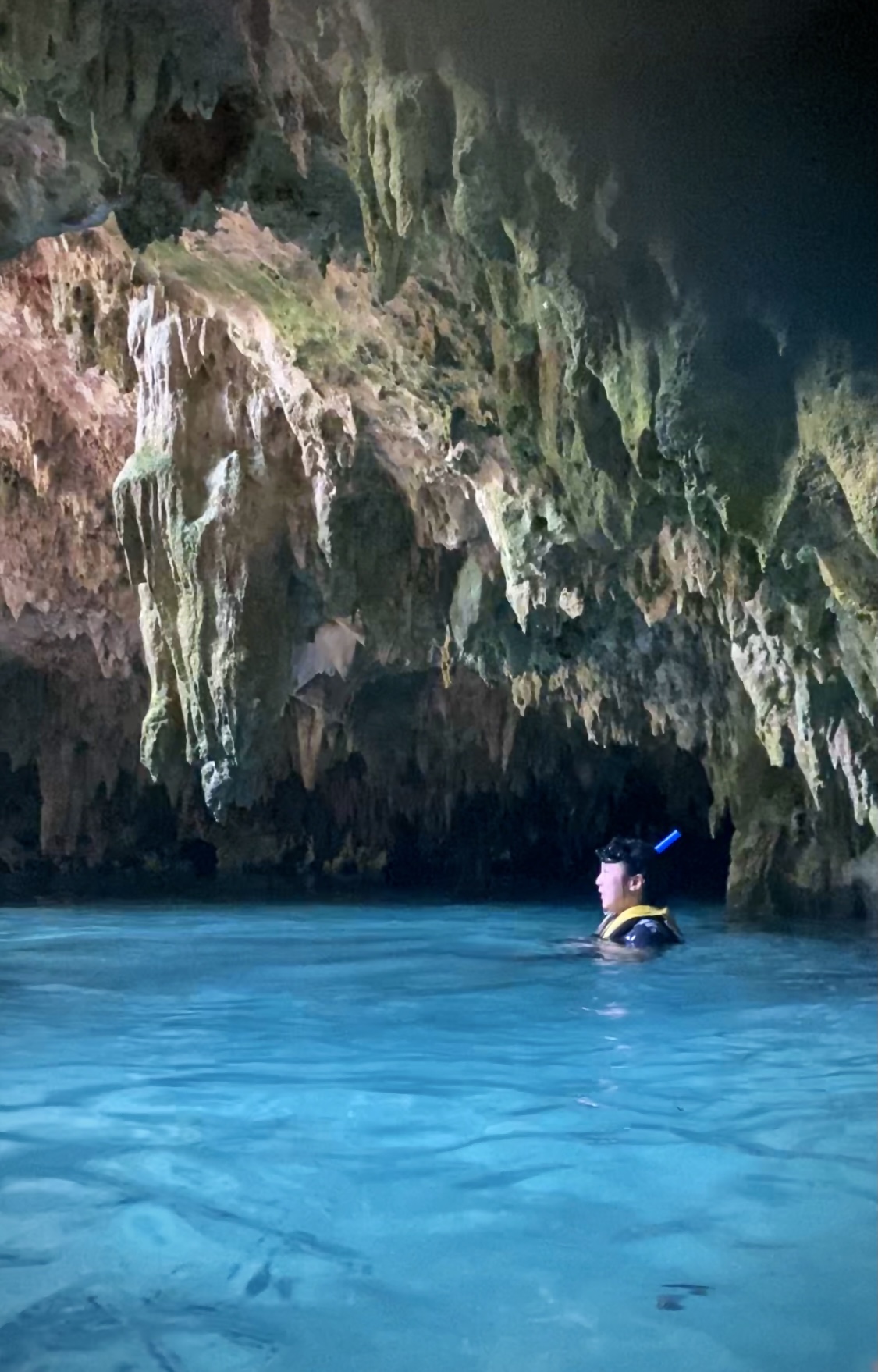 Inescapable! Even in the world's largest water cave, Ali-Sadr Cave, Iran; I took this photo in July 2019 while on a boat expedition with my family. Calcium sediments and current (at the bottom) and a history of water levels on the walls are visible in the photo.