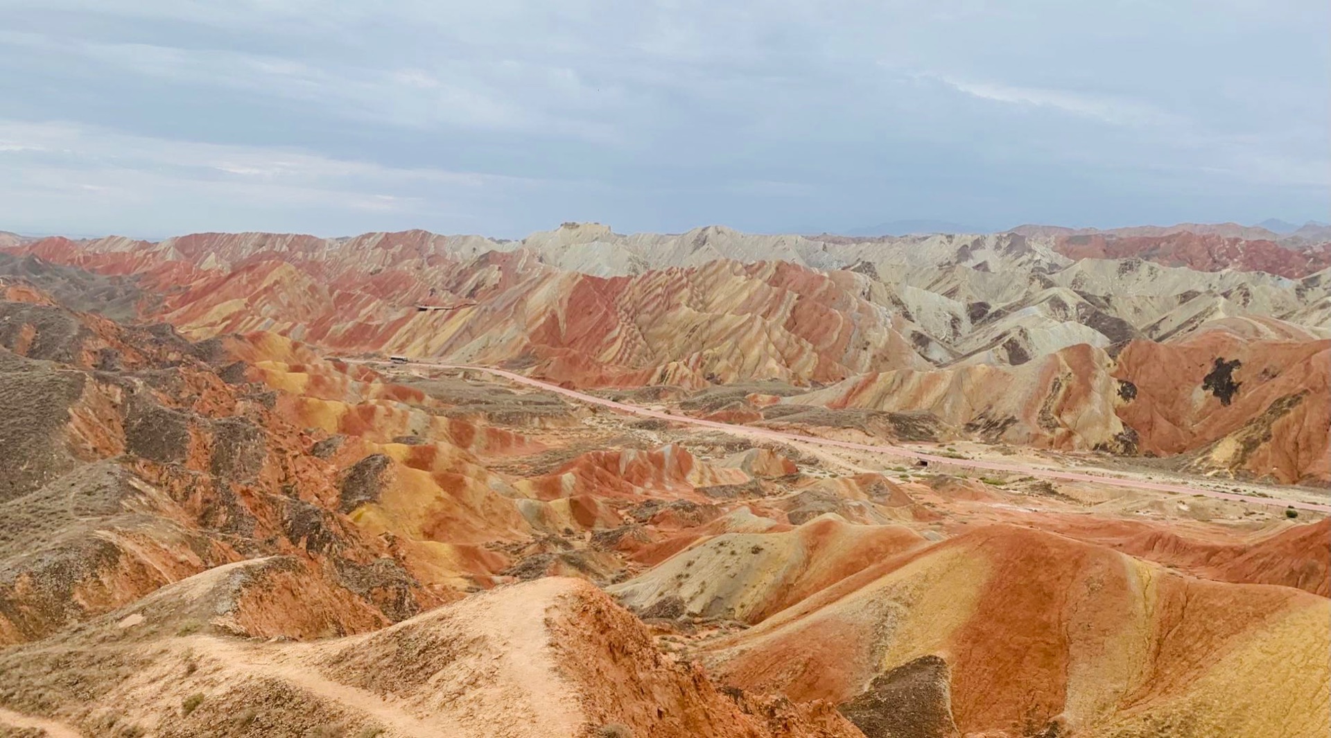 28. The Danxia Landform, the colorful mountains, in the northwest of China. Danxia landform is formed by endogenous forces and exogenous forces from red-coloured sandstones and conglomerates of largely Cretaceous age.