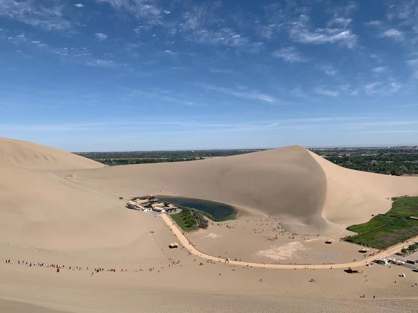 29. The Crescent Lake in the Kumtag Desert. It is formed from the subterranean river and have exited in the desert for thousands years.