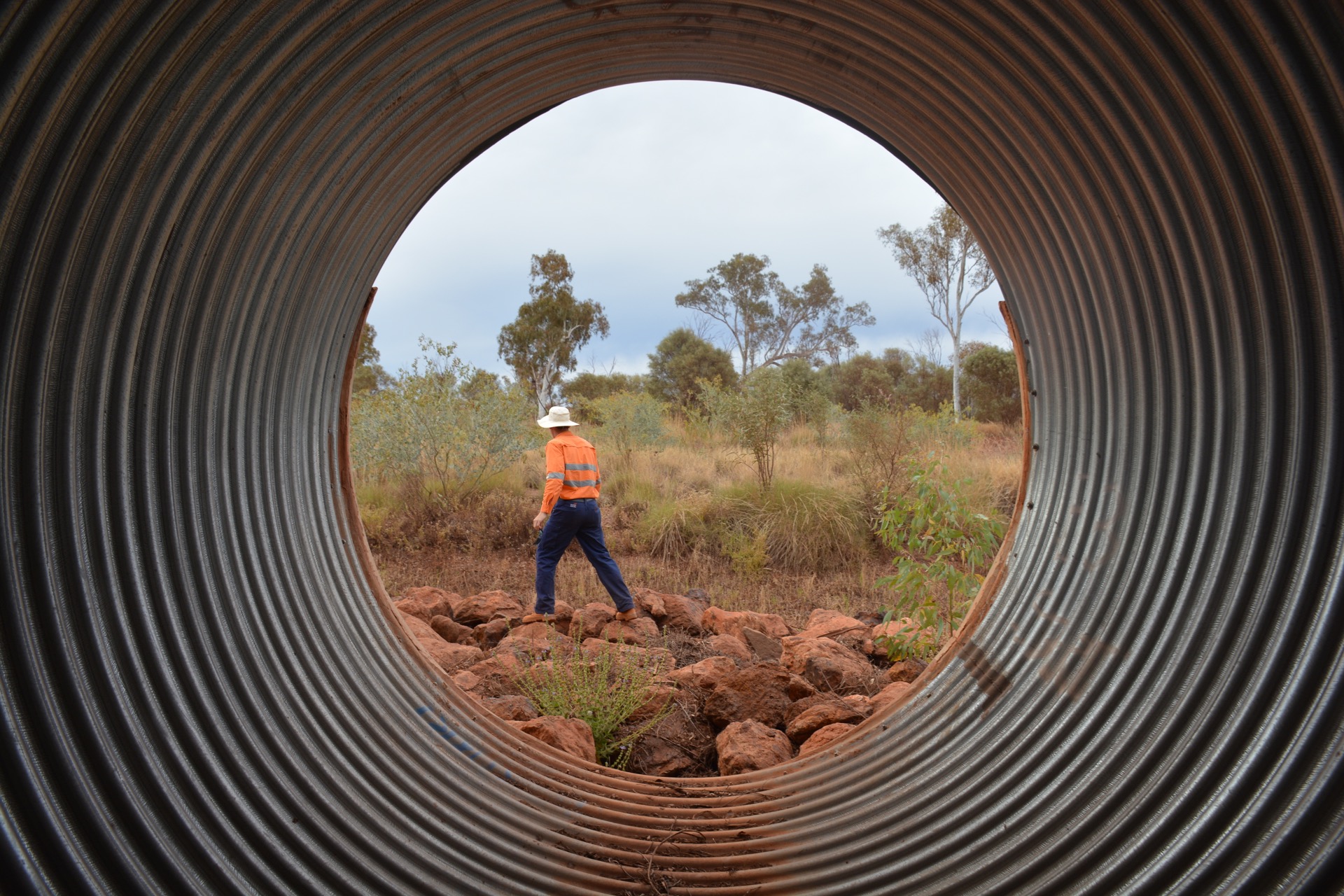 31. Rivers in the Pilbara are frequently diverted in association with mining activity. Here we inspect a large culvert leading into a river diversion channel.