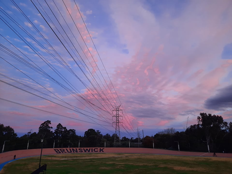 34. Sun sets in the coastal sub-tropics, illuminating the bellies of cumuliform clouds, originally formed with the radiation now dissipating into the night.