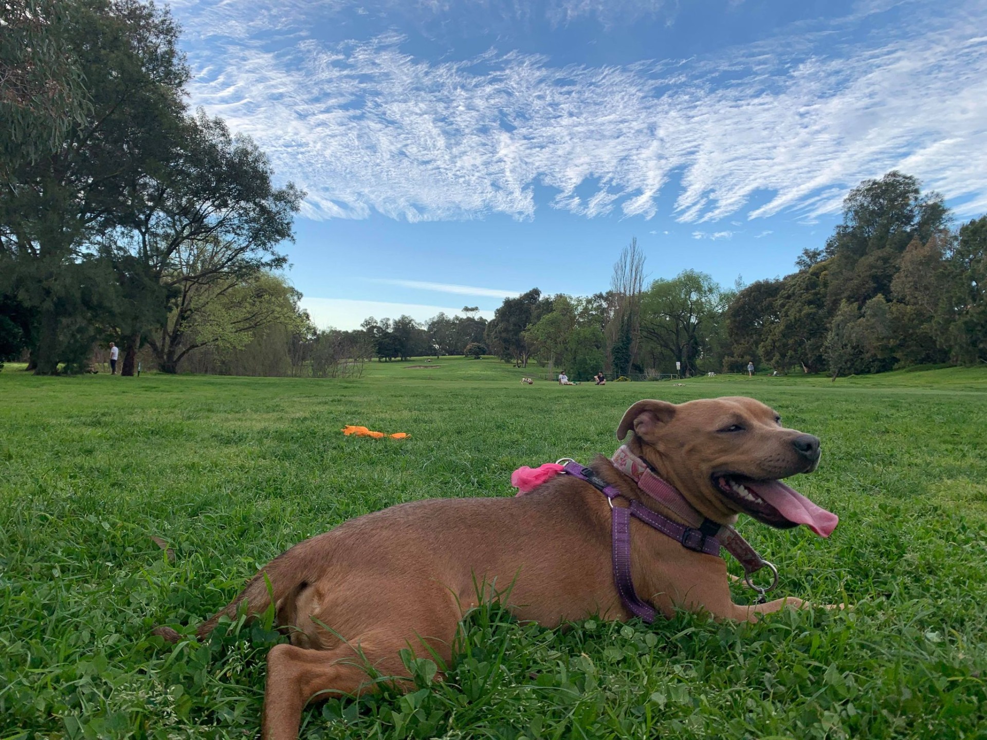46. Princess Buttercup in the park admiring atmospheric gravity waves - clouds caused by air flowing over mountains.